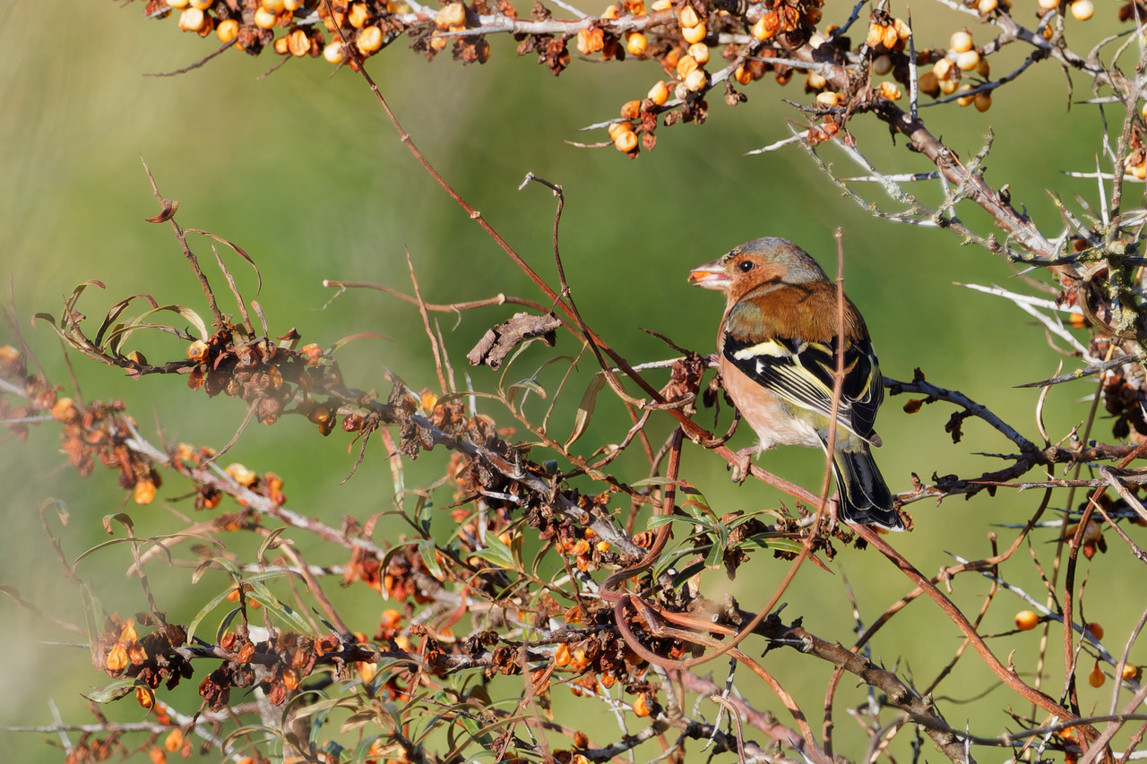 Le retour se fait sans hâte. Comme pour nous raccompagner, quelques Tariers pâtres jaillissent des haies, des Bruants ponctuent le chemin de leurs silhouettes discrètes. De petits cadeaux d’adieu, offerts par la Baie à ceux qui ont su se lever tôt et accepter le froid.
